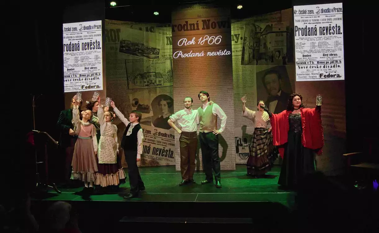 Béďa (Malý Smetana) - Franc Jan, Špinar Petr | Bedřich Smetana, Otec, císař Ferdinand - Sochor Martin | Bédík (nejmenší Smetana), kašpárek, Jaromír Thun - Skružný Tobiáš, Duchoslav Jan | Karel Havlíček Borovský - Matoušek Mikuláš, Hladký Jaromír | Katy, Dívka Anežka a Žofie velká - Šmídová Klára, Čížková Karolína | Julie, Esmeralda, Luisa - Flajšmanová Anna, Hladíková Dagmar